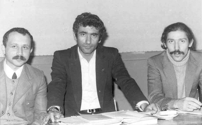 Bir fotoğrafla başlayalım. Genişçe bir masanın etrafındasınız, Hüseyin Baş en solda oturuyor, Onat Kutlar ayağını sandalyenin üzerine koymuş, dizine dayadığı elinde bir sigara, konuşma sırasını hararetle bekliyor gibi. Siz de onun yanındasınız. Bu fotoğraf ne zaman, nerede çekildi ve nasıl elinize geçti?